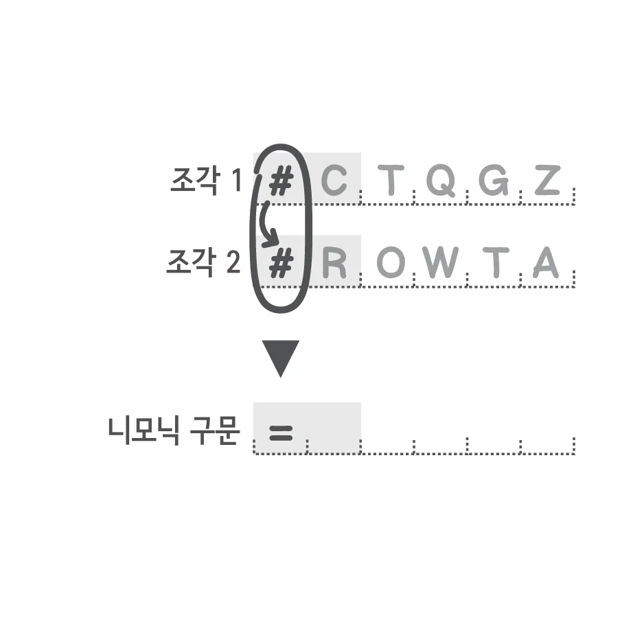 - 바깥쪽 조각에서 첫 글자를 확인합니다.